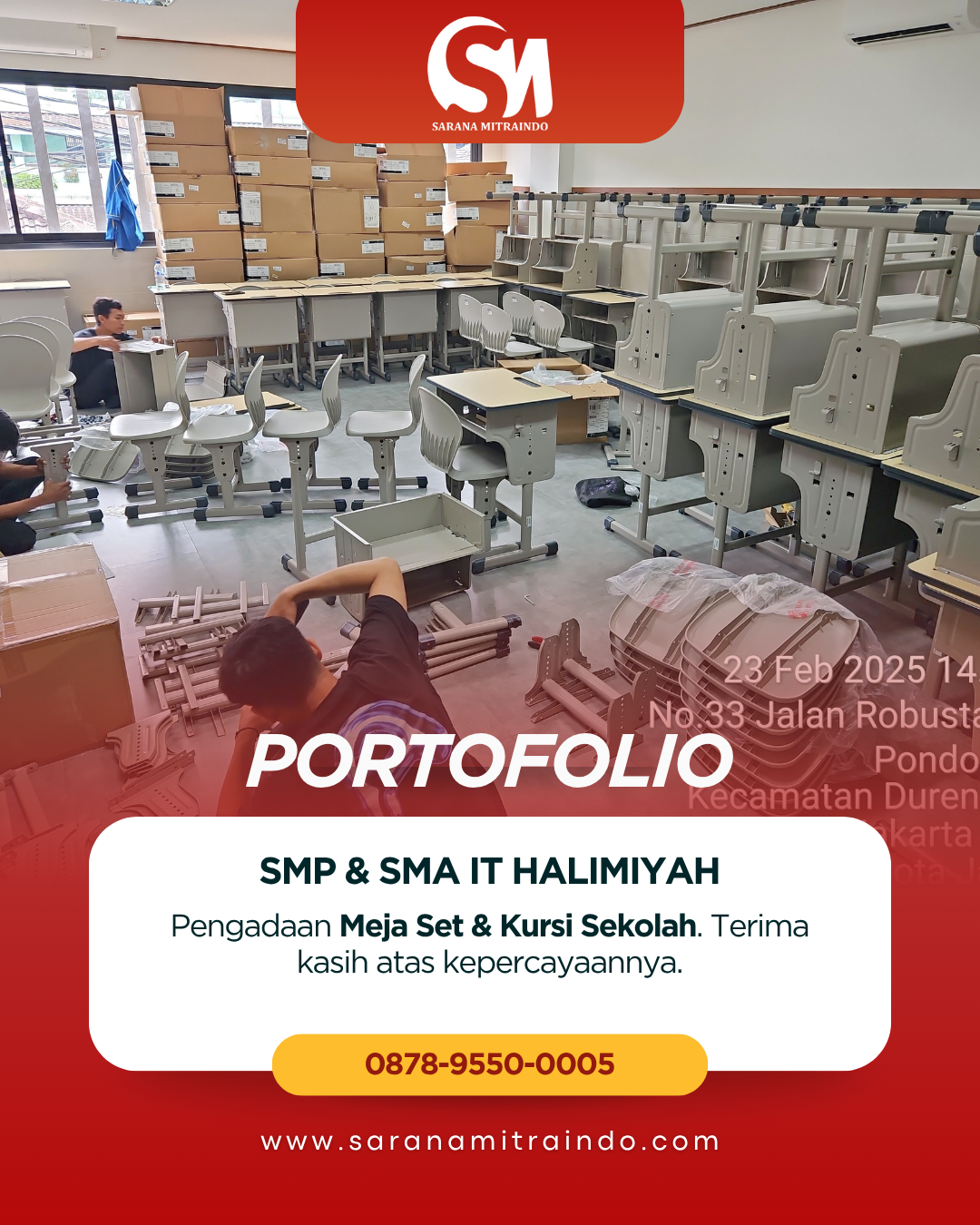 CV Sarana Mitraindo adalah perusahaan yang berdiri pada tahun 2023 dan bergerak di bidang pengadaan sarana dan prasarana sekolah, konstruksi bangunan, konveksi, serta jasa maintenance peralatan pendidikan. Kami hadir untuk memberikan solusi lengkap dan terintegrasi, khususnya bagi institusi pendidikan, proyek swasta, maupun pemerintah di seluruh Indonesia.